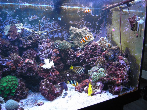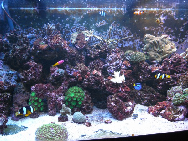 Der er sket lidt siden sidst jeg lagde billeder på. Alle sten er skiftet pga en eksistens der nappede fisk og jeg ikke kunne finde den, teknik er der også ændret på, samt beboere har ændret sig lidt. Fiskebestanden bliver mindre, da jeg nok vil af med min striatus og mine clarkii.