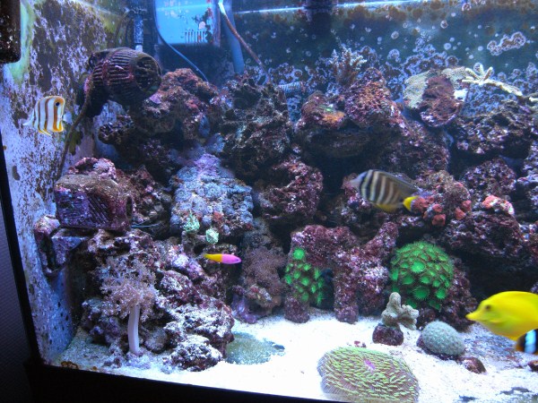 Der er sket lidt siden sidst jeg lagde billeder på. Alle sten er skiftet pga en eksistens der nappede fisk og jeg ikke kunne finde den, teknik er der også ændret på, samt beboere har ændret sig lidt. Fiskebestanden bliver mindre, da jeg nok vil af med min striatus og mine clarkii.