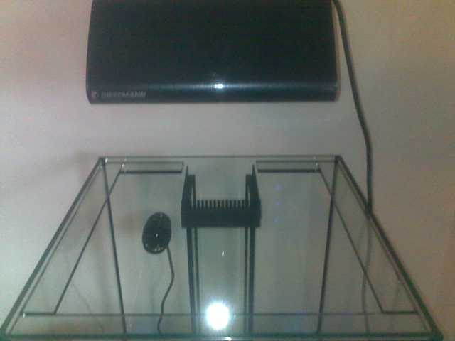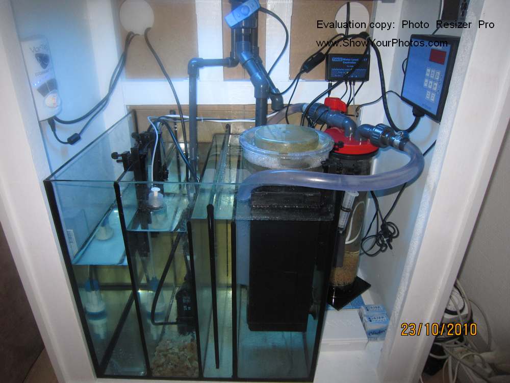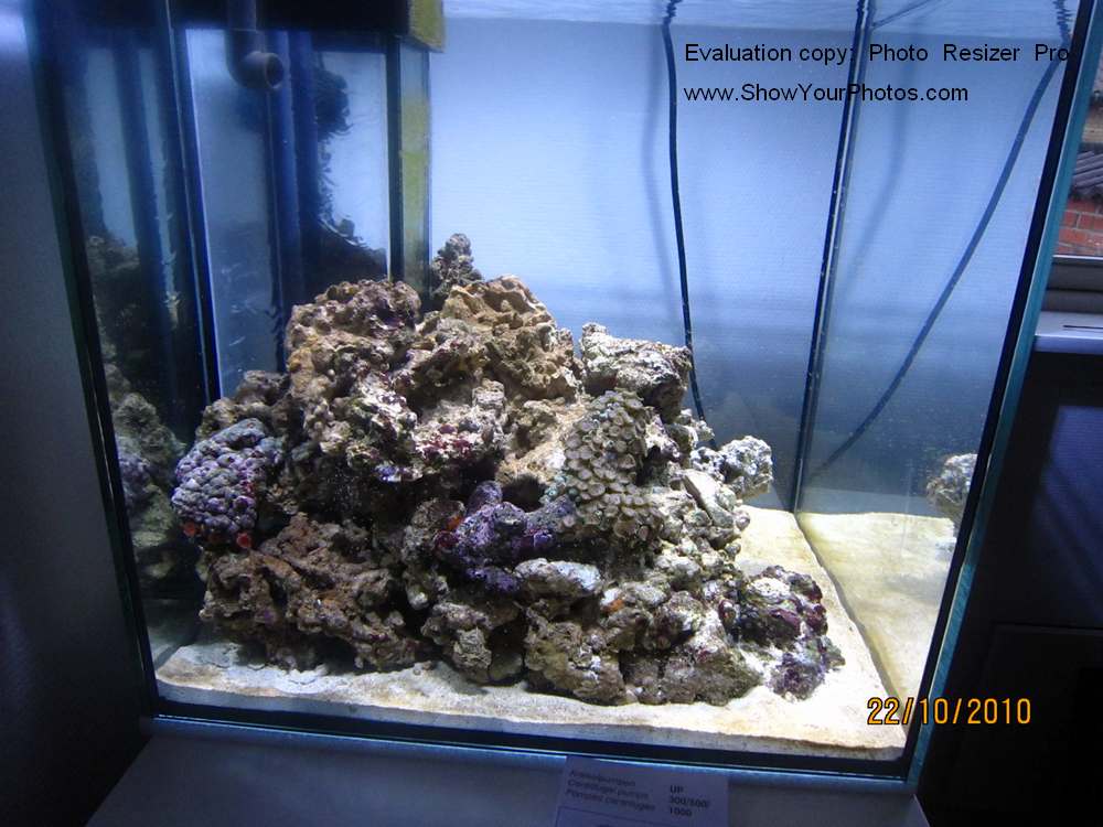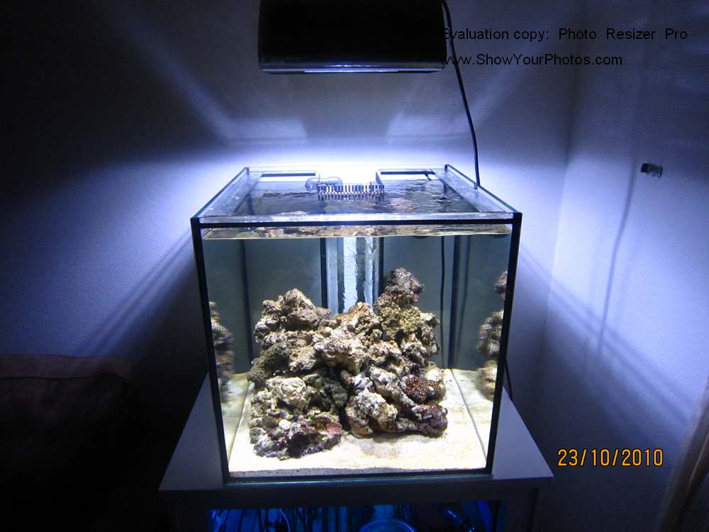 Det er et 50*50*50 med 3 sider optisk glas. Samt en sump på 45*45*45 med en 20L ferskvandstank.