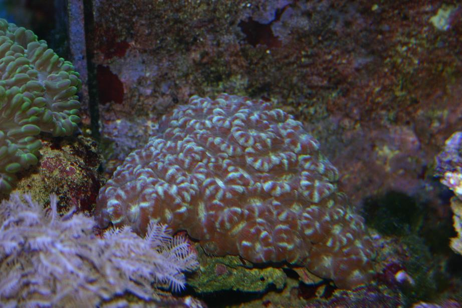 lilla/blå echinophyllia med grønne øjne 500.-