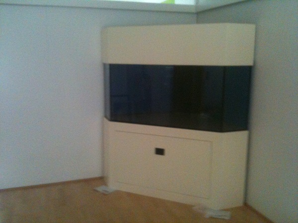 Dagen kom så her i torsdags vi hade bestilt flyttefolk til den hård del, skal lige siges det er et brugt et vi har købt, så vi var godt klar over der skulle ordens underskab, hehe men det vi ikke hade tænkt over var hvor stor dørene var i lejligheden så da de kom med det kunne vi kun lige få akvariet ind gennem den en dør og ja under skab må en tur ind over altanen da det er 8 cm for bredt til døren hehe. Sjovt der altid er noget der lige skal være på grænsen.