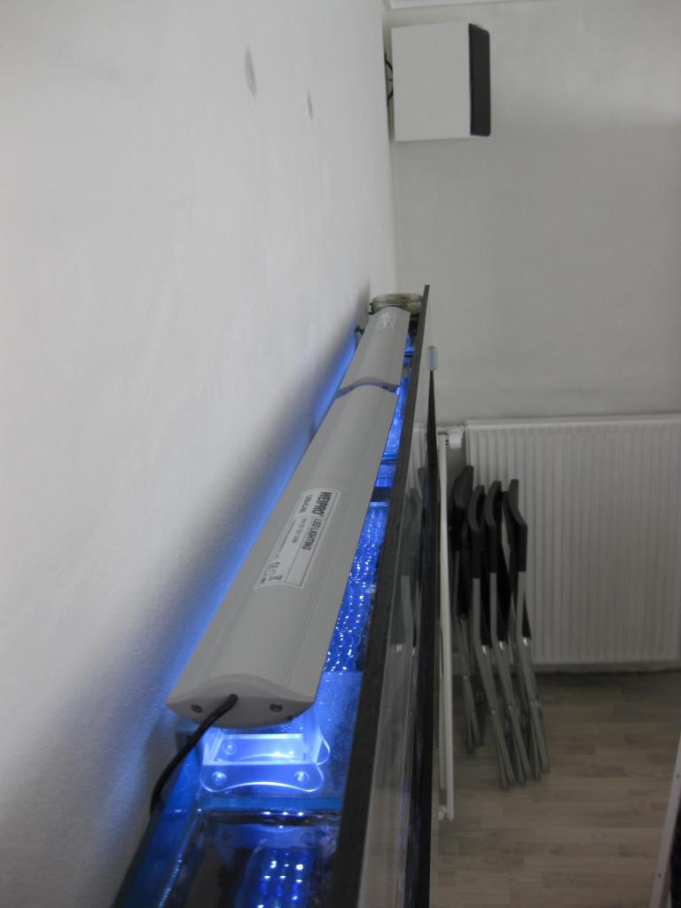 DIY led, DIM4 controller, DIY bord/lampe kasse, Skimz 181, Tunze silence 2400, 2 x Jebao WP-25, DIY PO4 filter