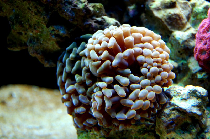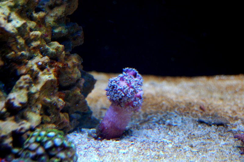 Der er kom lidt nye koraller og en enkelt fisk i akvariet.