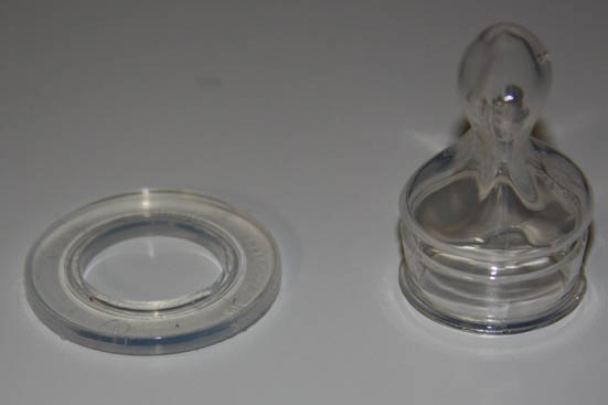 Min ide var, at sætte et stykke gummi mellem magneten og glasset for at minimere resonansen. Først prøvede jeg med ganske almindelige elastikker (i naturgummi), hvilket hjalp, men så knap så pænt ud. Jeg ville derfor gerne finde en løsning, som ikke ser lige så dumt ud, men stadig er effektivt og forsat er lavet af en gummitype, som ikke afgiver nogle giftstoffer i vandet. Efter lidt overvejelser fandt jeg på at bruge gummitutter til sutteflasker. To stk. koster ca. 30 kroner, og der skal kun bruges en pr. powerhead, så det var værd at prøve.
