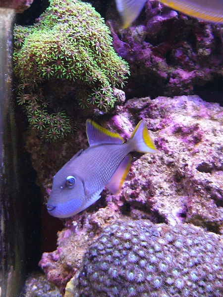 I går fik jeg leveret to aftrækkere Xanthichthys auromarginatus, en hun og en han fra Tyskland. De svømmer glad rundt mens de blafrer med deres finner
