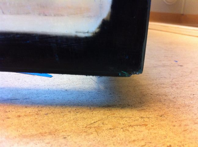 Nu har jeg så taget det blå bagbeklædning af på bagsiden, og opdager at der også her er glasskader i bunden.