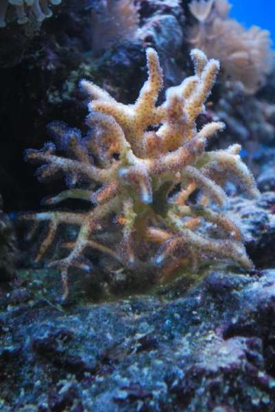 Det er en blød koral, sådan lidt svampet. Den har en krid hvid base og så de brunlige tentakler. Syntes ikke rigtig jeg kan matche den op til hverken de seriatopora eller poccilliopora jeg får frem ved en google søgning??
