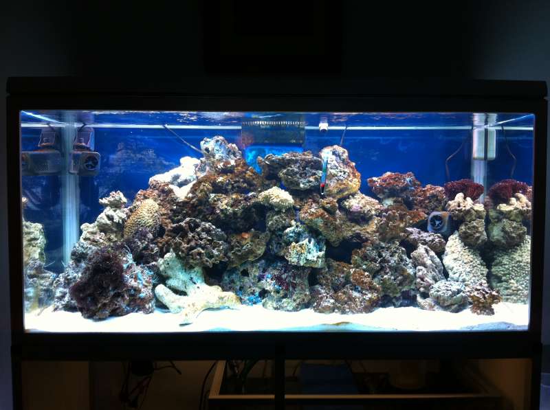 1: fiskene skal have et sted hvor de kan gemme sig og jo det kan de også i din godt nok, men desværre alt for godt. Her mener jeg at hvis en fisk bliver syg lægger den sig ikke til at dø fremme, men gemt væk i stenene. Eks en gul kirurg størrelse L bag nogle sten fyldt med koraller er ikke så fedt. Den rådner op og smadrer baljen.