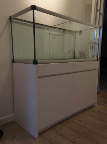 Ang. valg af akvarie har jeg faktisk haft meget lidt at skulle have sagt. Konen vil IKKE have et grimt møbel i sort eller andre usle farve som hun siger det, i sit hjem. Derfor faldt valget på Akvastabil's nye Mark 2 serie. Mere præcist en 360L => 130x50x55cm.