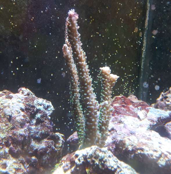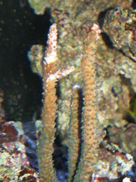 I akvarierne får Acropora ofte STN(Slow Tissue Necrosis), og kan leve fint med det i årevis, men den her koral dør muligvis at det som kaldes RTN( R for Rapid)