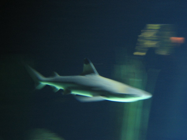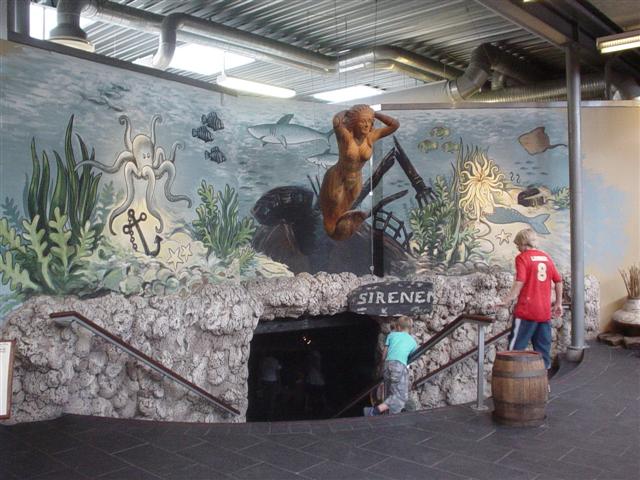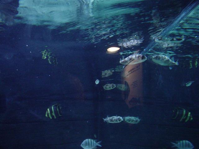 1) haj tanken er med flotte STORE fisk men ellers stadig meget kedelig dekoration (kunstige koraller) men en meget lang tank self. til gavn for hajen. i tanken var noget af det bedste nogle kuppler der når man kiggede igennem dem fik det til at virke som om at man befandt sig i akvariet.