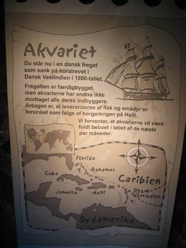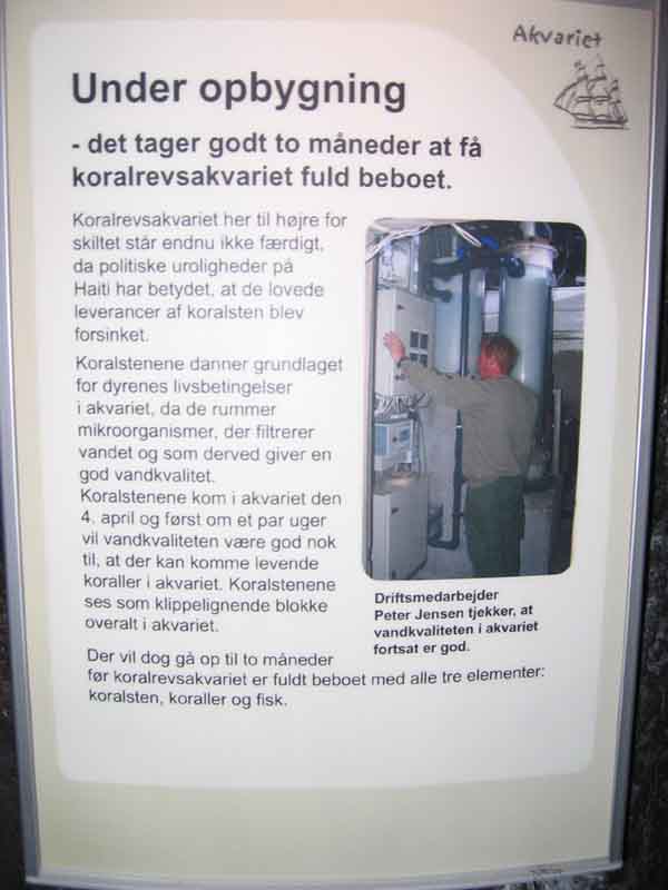 Der er 4 forskellige akvarier ( koralrev, Trigger ,Blæksprutte, Haj ) som alle er mere eller mindre ny startet. Så for en saltvandsakvarist er der ikke meget at kigge på i nu.