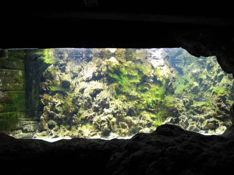 Akvariet er bygget som et skib der ligger på bunden af et koral rev, og man kan så gå en tur rundt i skibet og kigge ud på revet i diverse huller.