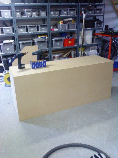 bordet har jeg lavet ud af 50x30x1,5mm stål rør og måler 170x70x50 og er beklædt med 16mm spån-plade.