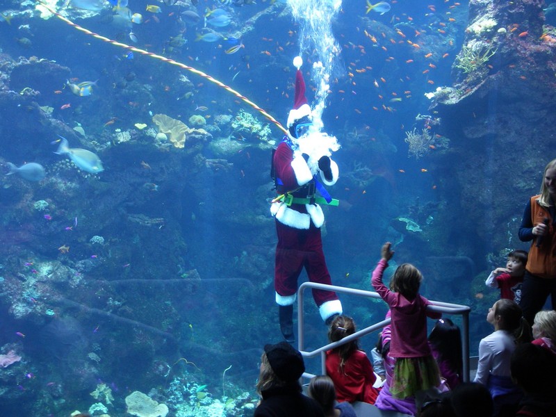 Vi besøgte California Academy of the Scienceses kort før jul. Det er beliggende i San Francisco og har en meget flot saltvandsafdeling. Julemanden kom på besøg