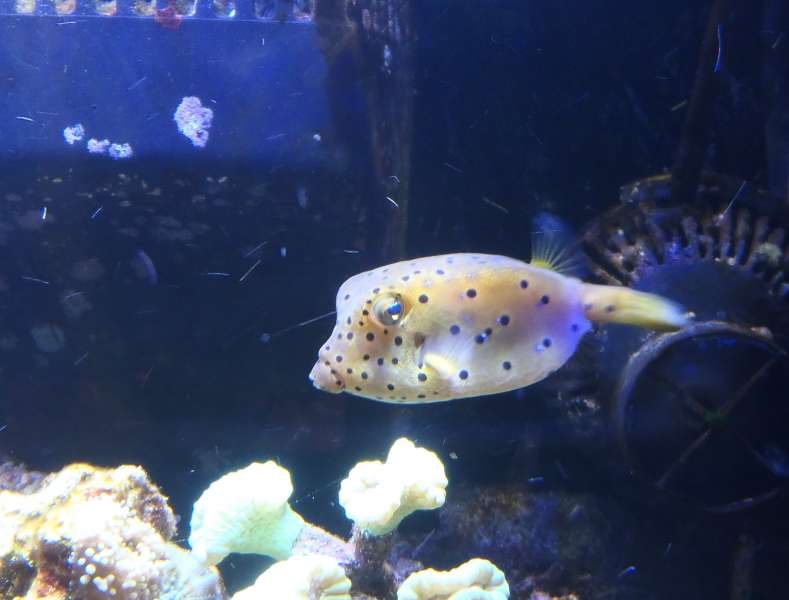 Hårdt presset af familien adopterede jeg også en Kuffertfisk, Ostracion cubicus En fisk jeg normalt ikke ville sætte i min balje. Tænker lidt at der er for meget flow i baljen tll den.