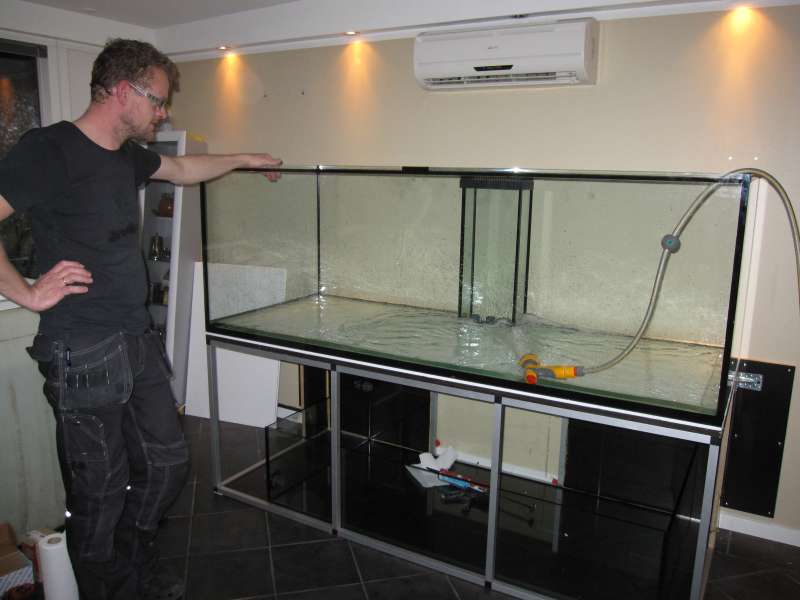 Så blev det tid til at fylde akvariet med ferskvand for at se hvordan det spiller med bordet og sådan. Jeg fyldte det op i går aftes, og lod det stå natten over, og det ser bare godt ud.