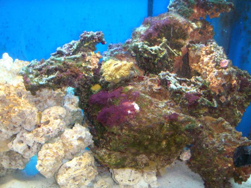 Først og fremmest er jeg i tvivl om det allerede fra staten er muligt og få cyano? De mørkerøde slimede plamager har bredt sig temmelig meget! Det begyndte at dukke op kort efter de levende sten var kommet i. De eneste steder der er ramt, er de levende sten, dvs. ikke noget på de døde søjler og bundlaget??