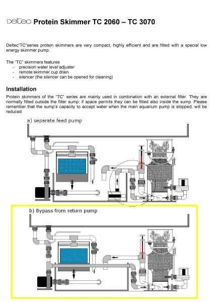 3. Det som jeg er bange for er at i Deltecs beskrivelse, står der at skummerens afgangsrør skal vandet kunne strømme uhindret (vist på billede 1). Det kommer det jo reelt ikke til hvis jeg sender dette vand ind igennem mine 2 nævnte gennemføringer.(De ligger jo lavere end skummerens afgangsrør) Her er der jo en eller anden form for modstand af den beskedne vandsøjle qua mit sump vandniveau - hvis i forstår?