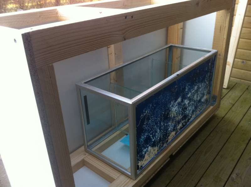 Nu har jeg så rykket akvariet lidt længere frem, med det resultat at det kun lige hviler af med 0,5-1 cm på den inderste rem.