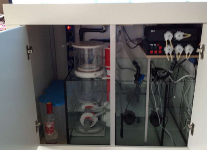 Jeg fik også flyttet min Boyu, og sat det nye akvarie på plads. Carsten har så lavet resten af rørføringen og hans snedker har monteret lågerne. Det er bare i orden håndværk de har lavet, både Carsten, snedkeren, maleren og dem der har limet akvariet (fotografen er så til gengæld en klovn