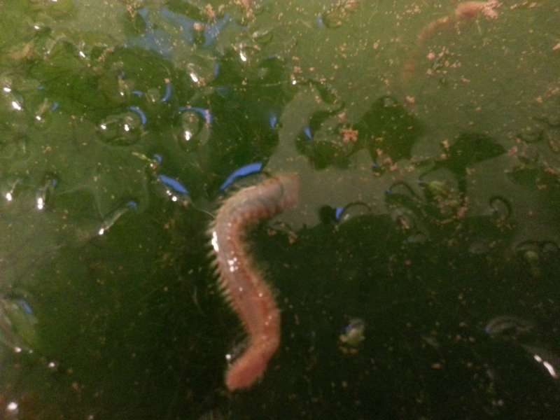 Jeg har lige taget et billed af det tang jeg har i mit 45 liters akvarium. Jeg prøver at få opdrættet tanglopper. Det går fint. Der er flere unger i akvariet nu. Men se lige det billed jeg har taget af tanget. Tror i at disse orme tager af lopperne?