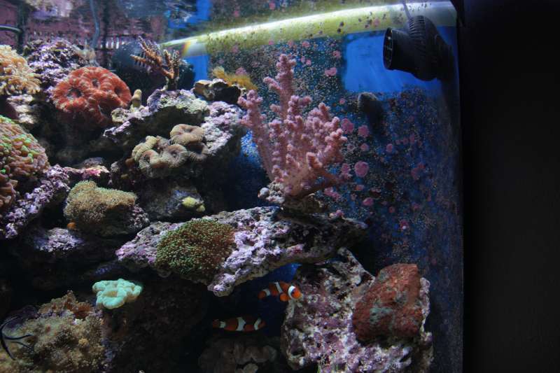 Udover koralerne er beboerne i akvariet, 1 Mandarin, 2 klovne, 2 gul kirurg, 2 pygmy gylter, 2 kardinaler, 1 tridmanni, 1 hugo, 1 nålefisk, 1 highfinn, 3 sexy shrimps,
