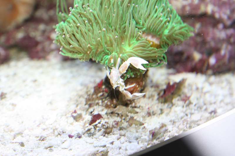 Udover koralerne er beboerne i akvariet, 1 Mandarin, 2 klovne, 2 gul kirurg, 2 pygmy gylter, 2 kardinaler, 1 tridmanni, 1 hugo, 1 nålefisk, 1 highfinn, 3 sexy shrimps,