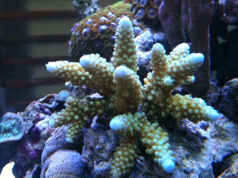 men kan egentlig godt være lidt i tvivl om min acropora lokani, den på billed 4 fra oven, om det virkelig er den rigtige, eller om det er en helt anden, for den ligner just ikke den på billedet, på deepoceans hjemmeside, hverken med zoantellerne eller skelettet...
