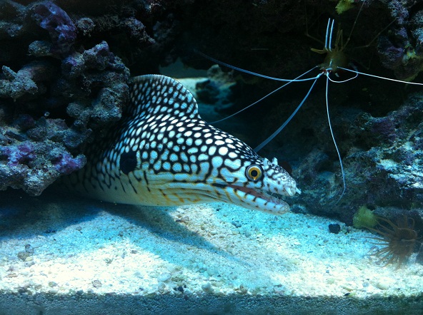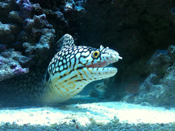 her er min lille baby på ca. 45-50cm -- Muraena melanotis / west afrikansk drage muræne