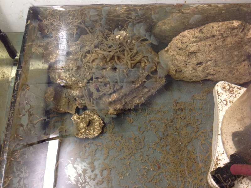 Håber skummeren kommer til at hjælpe lidt mod algerne, har også tilført en død sten på 2,5kg, ved ikke om det betyder noget.