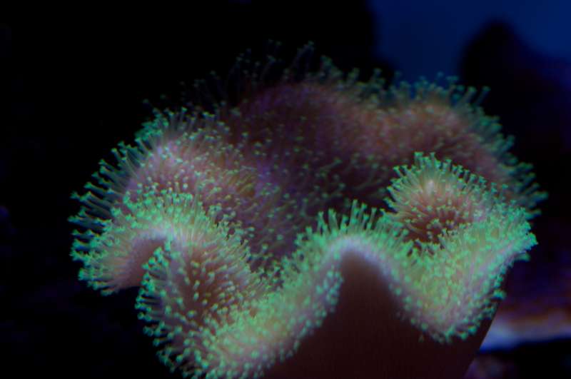 en reverse frogspawn (euphyllia) grønne spidser og lyserød bund