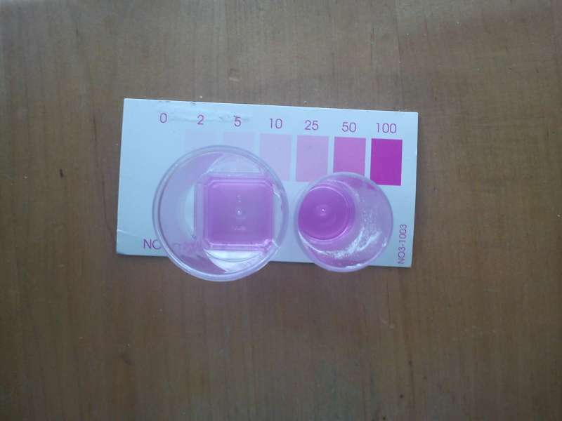 Så det vil sige hvis jeg holder glas og papir således og jeg syntes farven passer med 25 farven - så dividere jeg med 10 og så er min reele no3 2,5?Stig Jest skrev:Fidusen er at holde glasset på skrå og kigge gennem siden på glasset. Værdien divideres med 10.