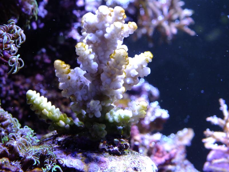 Det har ikke gjort den mindste forskel på mine SPS koraller. Jeg købte endda i starten af denne uge nogle helt nye superflotte Acroer til erstatning for dem jeg smed ud. Efter 2-3 dage havde de allerede fået begyndende brune belægning på spidserne, og dagen efter var det meste af dem hvide.