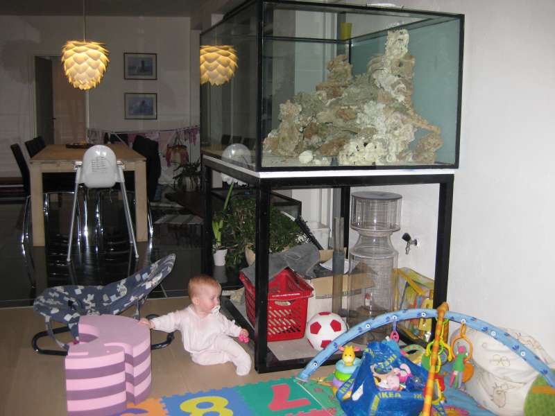 Jeg skal prøve at holde jeg opdateret med billeder efterhånden som projektet skrider frem. Men hav lidt tålmodighed, med 2 piger en på 6år og en på 7 mdr, et arbejde der tager mere end 37 timer og et garagebyggeri som også skal blive færdig så er det ikke mange sekunder man kan hugge til akvariet!:crybaby: