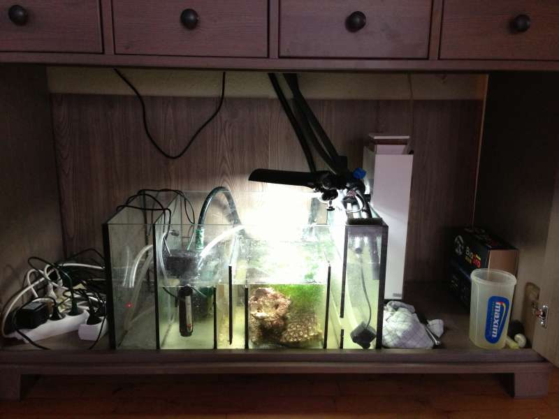 (Er selv kommet i tvivl om et gennemløb på kun 300L i timer er for lidt i refugiumet, så det kan jeg ikke råde mere om...)