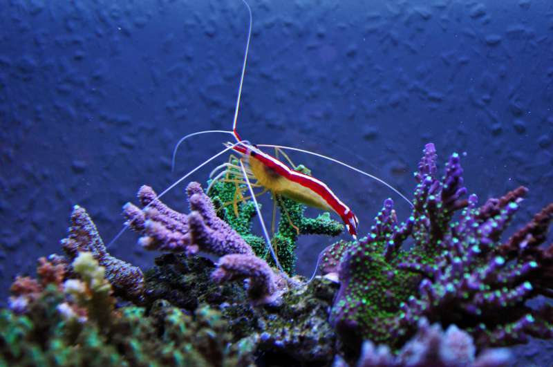 Før årsskiftet var akvariet ramt lidt af glasroser, og jeg havde egentligt bekæmpet ret kraftigt med saltsyre men uden de store resultater. Jeg fik indkøbt en Lysmata wurdemanni, og den var heldigvis sulten efter glasroser - så de er helt væk nu! Dejligt når naturen selv er den bedste til sådan noget.