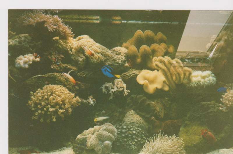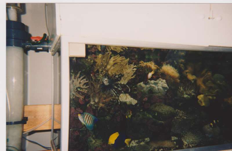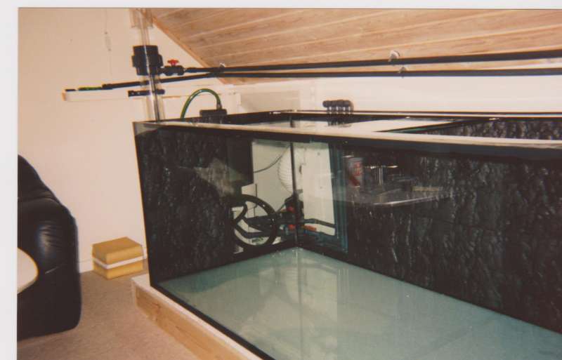 Så at nogle brugere herinde gerne ville se fotos fra "gamle" dage hvor der blev brugt koral skeletter og Faxe kalk. Jeg har desværre (læs heldigvis) ingen fotos fra dengang jeg startede mit første 100L op med døde koraller, men har da lidt fra før levende sten perioden. I får lidt fotos fra mit 530L med Faxe kalksten og mit only fish 250L også med Faxe som jeg havde startet op begge to næsten samtidigt og plus lidt fra mit 1120L igen med Faxe. Dengang kørte jeg en 250W hqi over 530 - almindelig neon over 250L med hver sin skummer (luftsten drevet selvfølgelig dengang) og Eheim udenbords pumper. Disse akvarier blev lukket ned til fordel for et 1120L med to luftstensskummere og flere Eheim cirkulationspumper (fra de andre akvarium) og stor spandpumpe - igen med Faxe som fundament - men mere et fiske akvarium da de tre 150W hqi ikke kunne gøre hvad 250W kunne. Disse billeder er taget omkring 1997/98. Udviklingen har taget fart, men dengang var el squ også billigere end nu