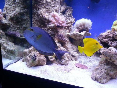 De andre nye fisk er Acanthurus xanthopterus (Yellowfin kirurg) str XXL (22 cm), Zebrasoma flavescens (Gul kirug) samt en rigitg fin Paracanthurus hepatus (Palet kirug), alle har det super godt.