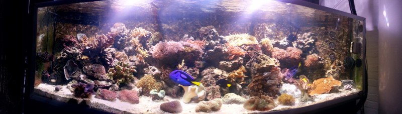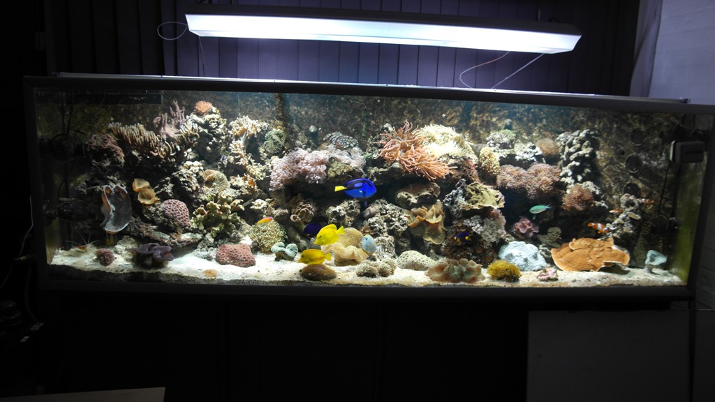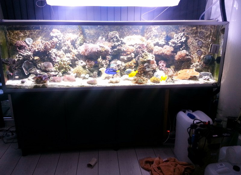 Sjovt nok startet det med et RMS 130 liters for 2,5 år siden, men der gik ikke ret lang tid inden vi indså at det var for lidt og fik derfor fat på dette akvarie, som siden er blevet større og større, dyrere og dyrere, men ufatteligt smukt og som man bare ikke kan undvære. :K