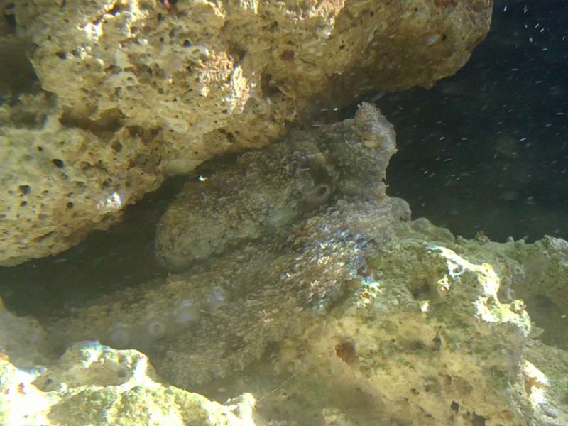 Hey så fik jeg mig endelig en Reef Octopus Sp hjem fra DeJongMarinelife.nl (gennem Moby - DeepOcean.dk), og i kan tro den er spændene. Startede akvariet op fordi det alligevel bare stod og samlede støv, og jeg altid har haft en drøm i maven om en blæksprutte i hjemmet. Så for ca halvanden mdr siden fyldte jeg mit gamle 102l akvarie med buet front op med nyblandet saltvand, en pose levende sand (fiji pink), et tunze nanoreefpack jeg havde liggende, et gammelt 50w varmelegeme samt en gammel Hydor cirkulationspumpe (På omkring 2800 mener jeg) og nogen gamle døde sten jeg havde liggende fra et tidligere setup, som fik en grundig skylder/spuler/skrubber over flere dage i kogende og alm ferskvand. Det hele blev så poddet med 2 godt levende sten fra mit andet kørende akvarie samt lidt Zeo Bak. Af lys over har jeg valgt kun at have to stk 24w t5, et blåt og et actinic, da dyret jo er nataktivt, men overvejer dog lidt at finde noget mørkere belysning, da jeg ellers ikke ser ret meget til den. I tunze filteret blev der smidt aktivt kul, rowaphos og filtervat, og det kører jeg stadig med. Bliver skiftet engang månedligt. Har ik haft noget særlig indkøring, men efter et par uger og nogen grimme brune alger blev der smidt en 4-5 godt voksne turbosnegle i som virkelig har gjort deres arbejde bedre end jeg havde forventet. Ydermere har de ynglet godt, og sammen med sprutten blev der introduceret 4 levende chromis, 3 eremitter og 6 assorteret størrelser nasarius snegle, så sprutten har lidt at jage naturligt af, udover frostfoder som jeg vil smide ned til den engang eller to ugentligt indtil videre. Er ikke selv helt klar over racen på sprutten, så hvis en af jer har en ide må i meget gerne fortælle hvad i tror det er for en. Imens vil jeg søge videre på nettet om den.