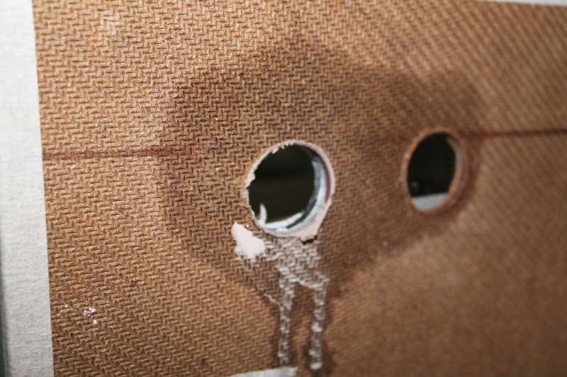 Boret kom i går fra England så det var bare om at komme i gang. Overløbes hullerne skulle bores, nok det jeg frygtede mest. For at styre boret købte jeg en masonitplade i jem og fix til 18.95. I denne plade borede jeg med boret