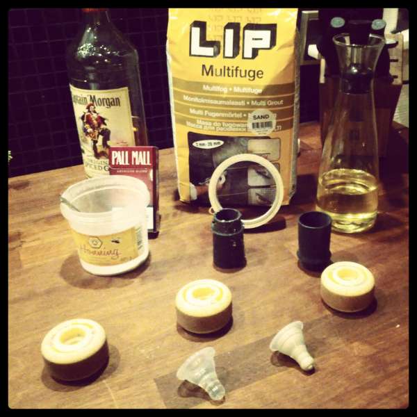 Jeg fik lige lyst til at lave nogle reefplugs og hvad har man lige liggende ude i skuret, skateboard hjul :W