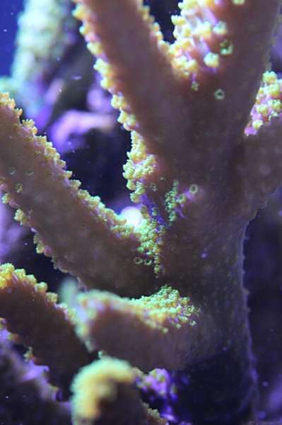 Har fx en gul Porites - er meget svær at gøre "glad"