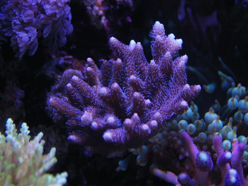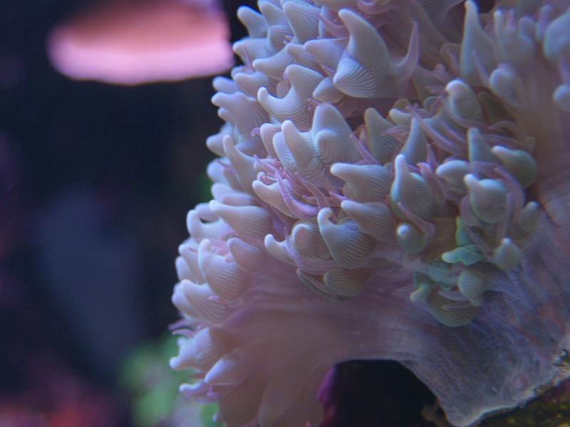 Som dekoration er naturligvis også et mindre antal levende sten, som jeg har beholdt. Mest fordi der lever koraller på. Da jeg startede akvariet op, lagde jeg 50 % af mine levende sten, fra det tidligere akvarie, ned blandt keramik søjlerne for at seede akvariet med min eksisterende biologi, men disse er efterhånden taget op alle sammen.