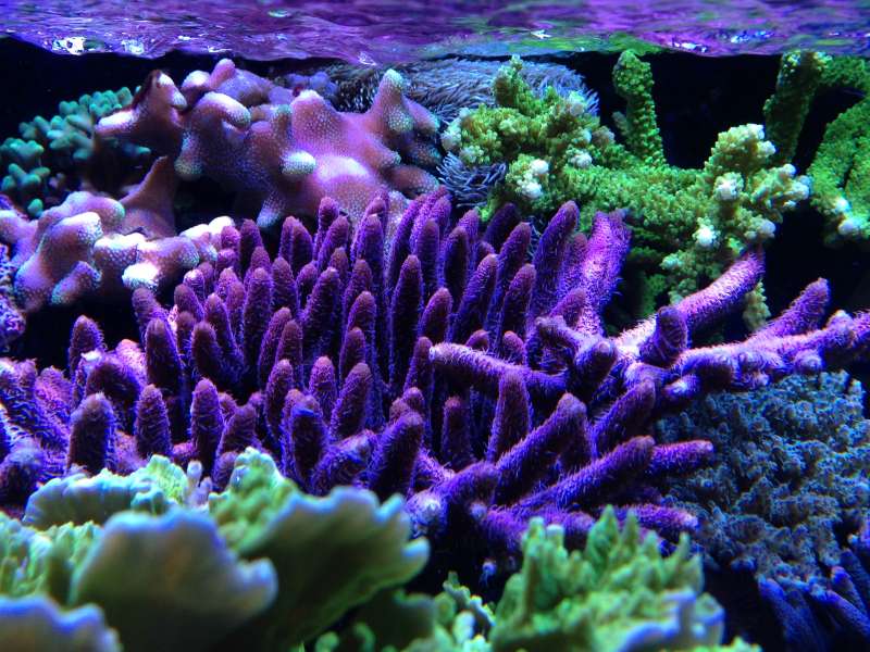 Lyset: Lys har helt sikkert også en stor indvirkning, hvor meget, i hvilke farver osv osv. Der er skrevet en længere artikelserie på Advanced Aquarist om emnet, så det vil nok føre for vidt at prøve at lave et sammendrag af det her. Interessant er det dog, at der sker noget lidt mærkeligt omkring de ”beskyttelsesfarver” vi ser på vores korallers spidser. De beskytter korallen mod de skadelige biprodukter fra fotosyntesen, hydrogen peroxid er nævnt, som et af dem. Men denne beskyttelse fremkommer ikke kun ved meget kraftig belysning. Selv ved en noget lavere lysstyrke producerer korallerne denne beskyttelse.
