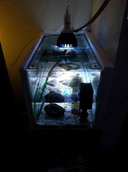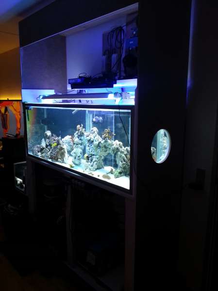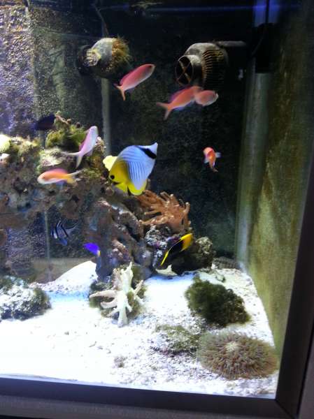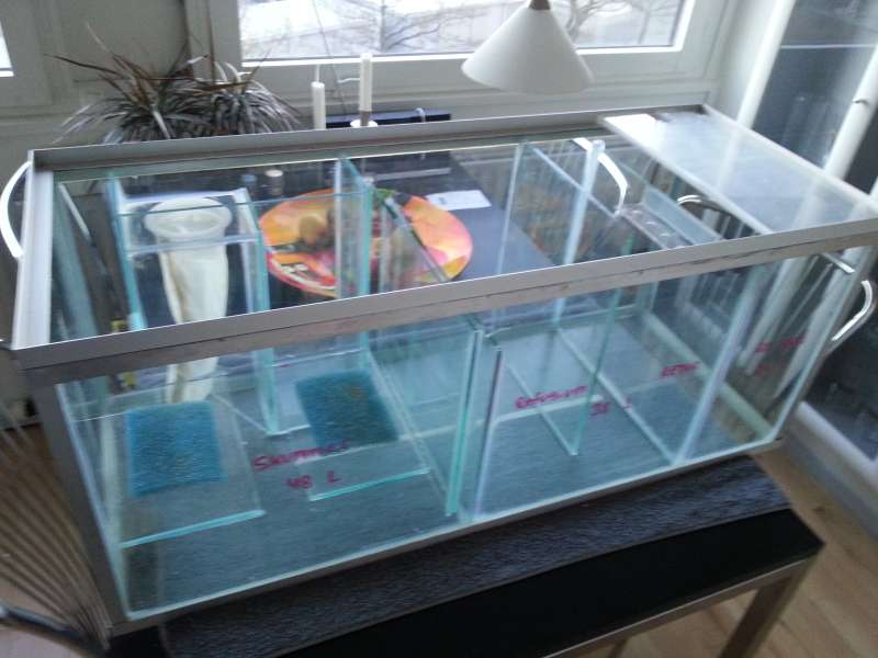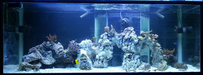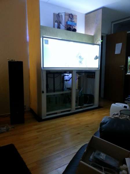 Nok om det. Jeg har altid haft vand i nærheden. Akvarier (fersk) og bassin udenfor. Det første saltvandsakvarie var tilbage mens jeg boede hos min forældre som en stor knægt. Hmm, ca. 1980 vil jeg tro. Det gik nogenlunde omend teknikken ikke var særlig udviklet. Det var på 380 L og nogle få fisk. Efter en lang pause byggede jeg så et i træ på 1800 L. Det var et fedt akvarie som jeg dog endte med at sælge da der kom børn til.