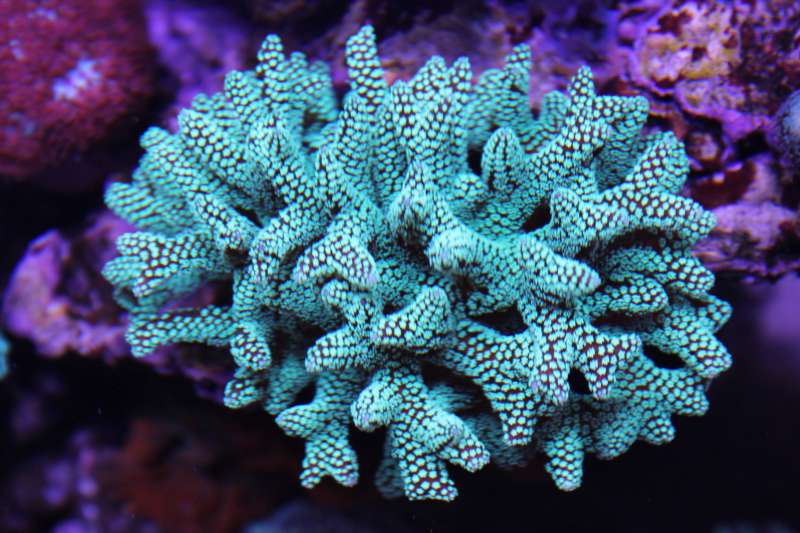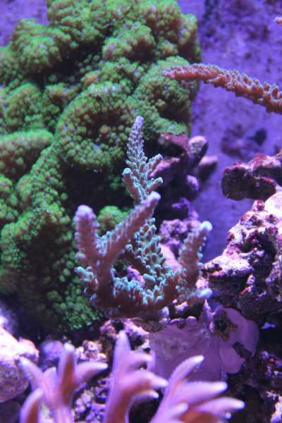 Vi har en blå-grøn acropora, som har stået flot og groet fint gennem længere tid. I dag opdager vi så, at den har helt blottet skelet ved roden. Roden er langt fra i skygge, så det undrer os meget. Resten af korallen ser fin ud. Kan det være noget sygdom? Alle vores andre SPS står super flot, og værdierne er som de plejer (Kh 10, Ca 340 (vi arbejder på at få den op), Mg 1400, PO4 0,04).