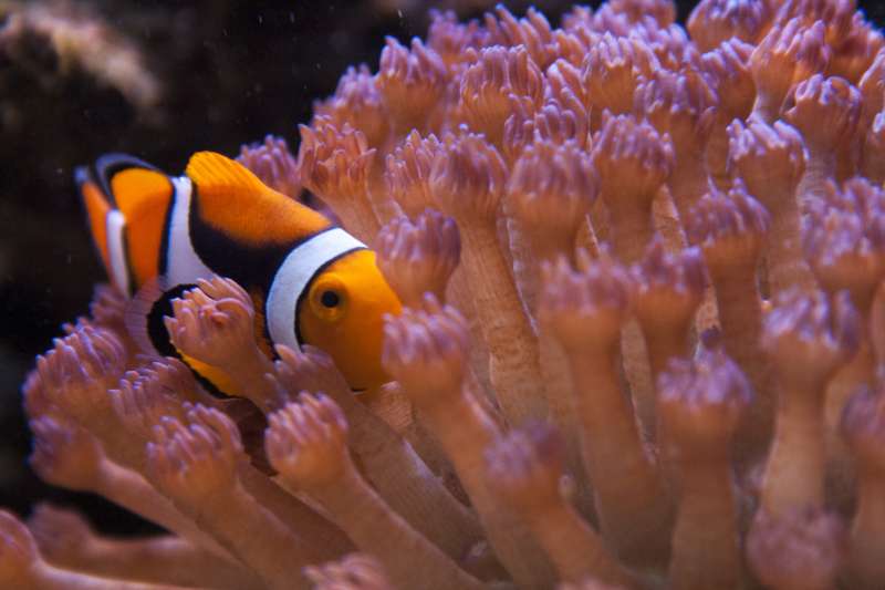 Et par billeder af min Hugo som kigger ud fra sit skjulested bag mine skiveanemoner og et billede af en af mine flotte Nemateleotris Decora.
