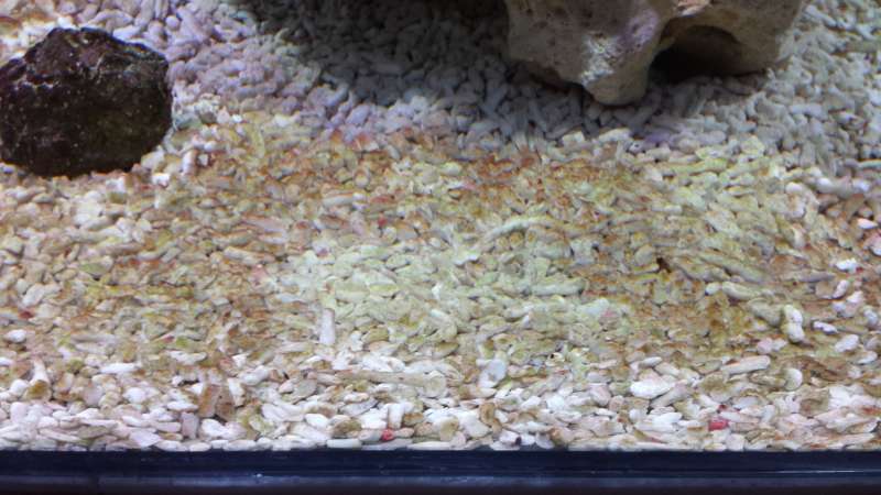 Nu er indkøringen godt igang de brune alger er næste væk og de grønne er ved at komme frem, men her til morgen så jeg at der var kommet en del "røde" alger på stene og bund laget var der røde tråde, ved i hvorfor det pludselig er kommet ???